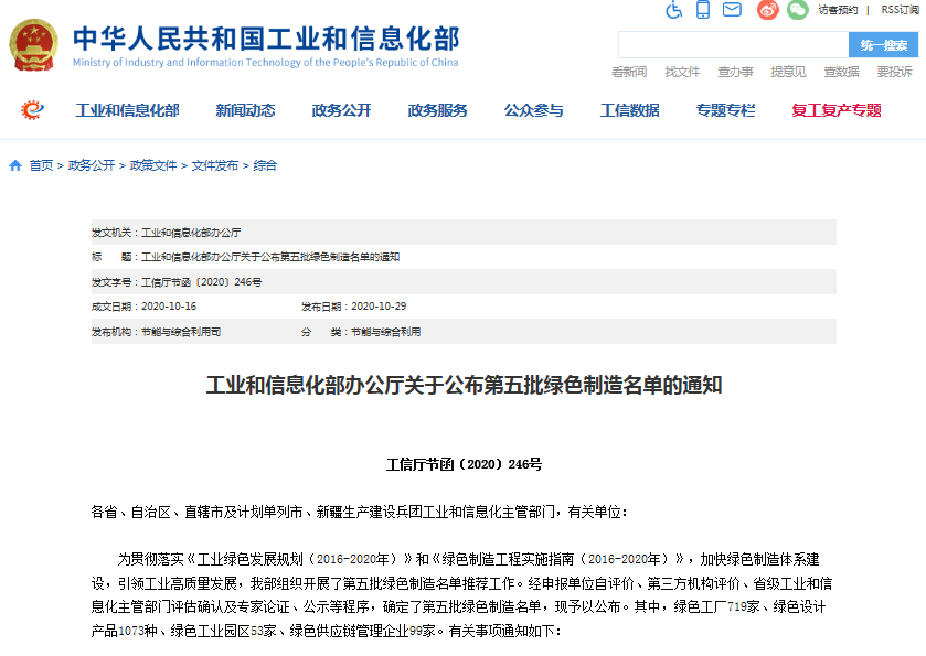 2020/11/6 | 来自:人力资源2020年10月29日,国家工业和信息化部公布了国家第五批绿色制造名单,Z6尊龙成功获评“国家级绿色工厂”。