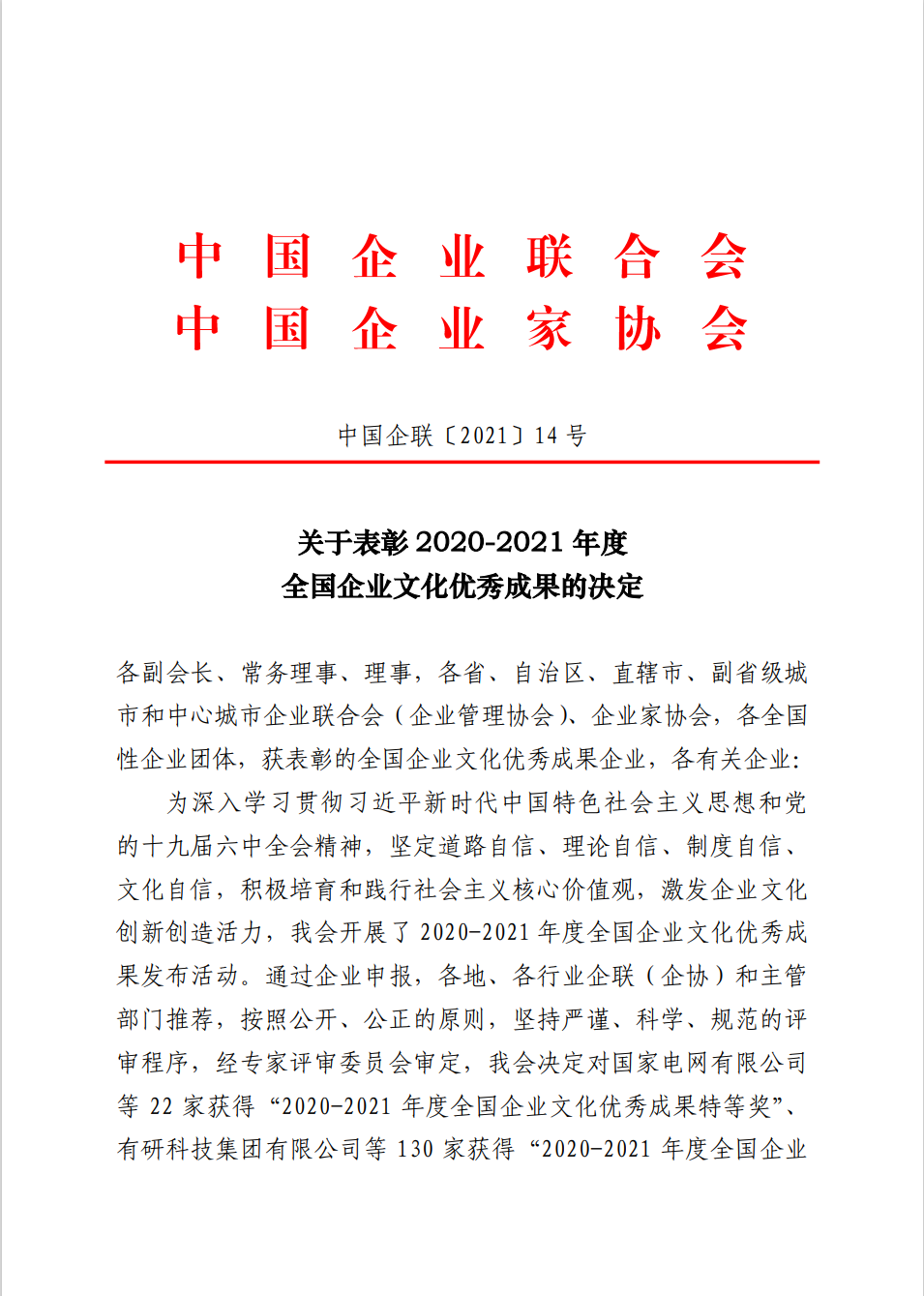 近期,Z6尊龙又迎来喜讯,公司荣获中国企业联合会、中国企业家协会颁发的“2020-2021 年度全国企业文化优秀成果特等奖”。
